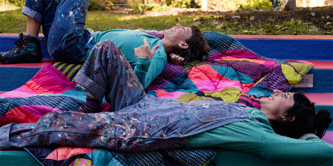Jessie and Katey are a Baltimore-based artist team that transforms public spaces into playful and vibrant experiences. This dynamic duo has been turning urban areas into works of art for the past decade. And now, we’re teaming up with them to bring you our newest print - Chromatic Voyage. We sat down with the pair to learn more about their process and their latest collaboration with Rumpl.