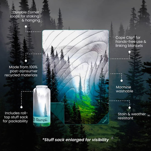 Featuring a durable VersaWeave™ shell for debris and weather resistance, corner staking loops, and a hands-free Cape Clip®, the Original Puffy Blanket is designed to be enjoyed everywhere from camping and cabins to tailgates and tournaments. Your purchase gives back. Rumpl has partnered with 1% For the Planet to give back to causes supporting public lands.