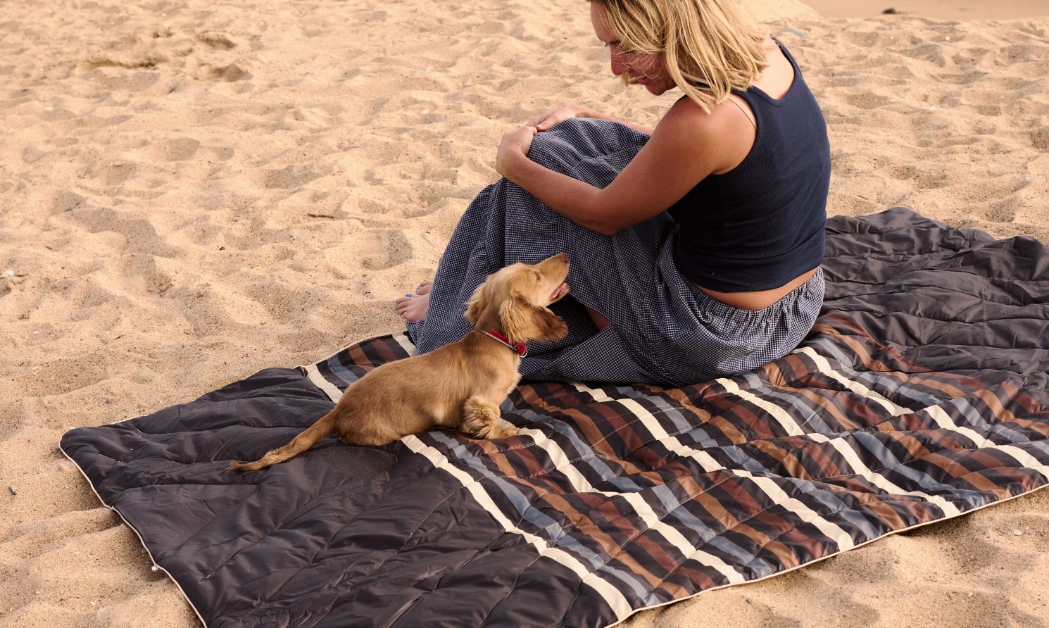 Meet the Stash Mat, the packable picnic blanket that's one-part ground mat and one-part tote bag.Now in Mocha Mini Stripes - bringing a little mid-century modern to your sand-free zone at the beach, this print features earthy coffee tones and retro cream accents.